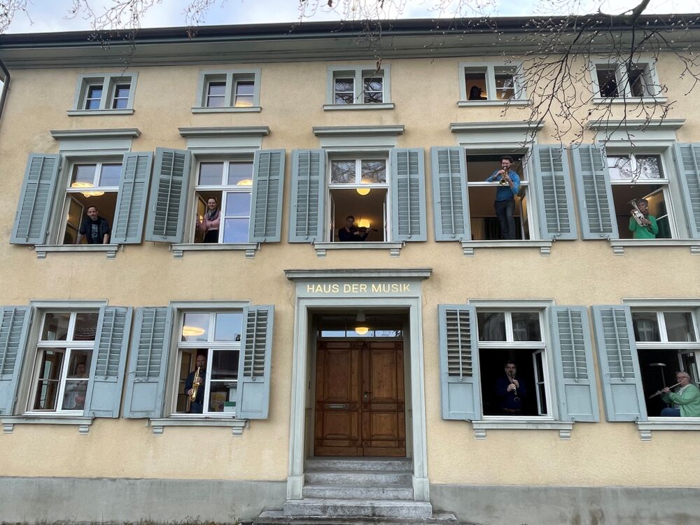 Zu Beginn des Projekts sorgten die Musiklehrpersonen für einen besonderen Einstieg: Sie spielten gleichzeitig aus verschiedenen Fenstern, sodass ein bewusst chaotisches Klangbild entstand. Dieses klangliche Durcheinander erinnerte an „Katzenmusik“ und machte eindrücklich hörbar, wie ungeordnet Musik wirken kann.
