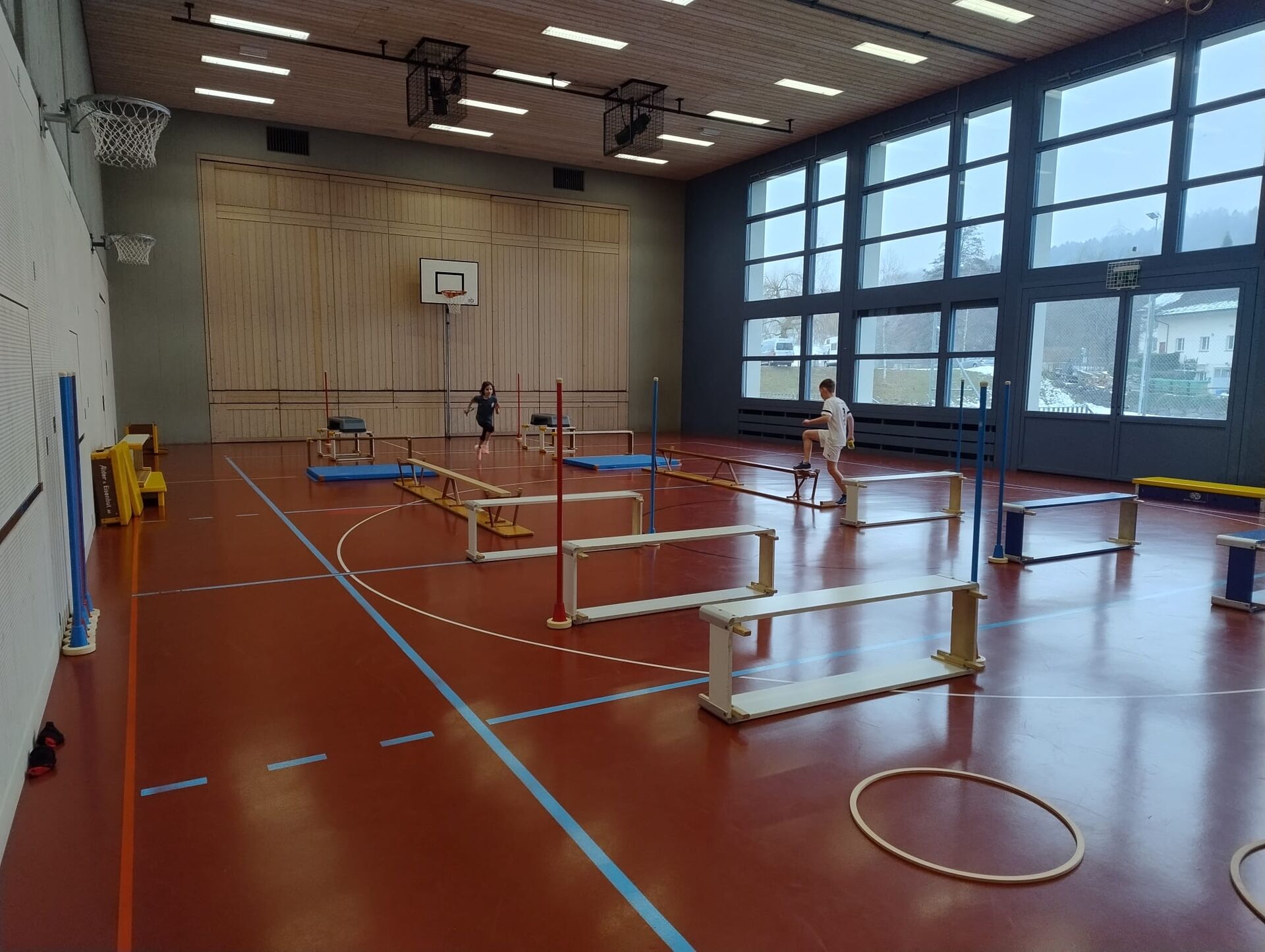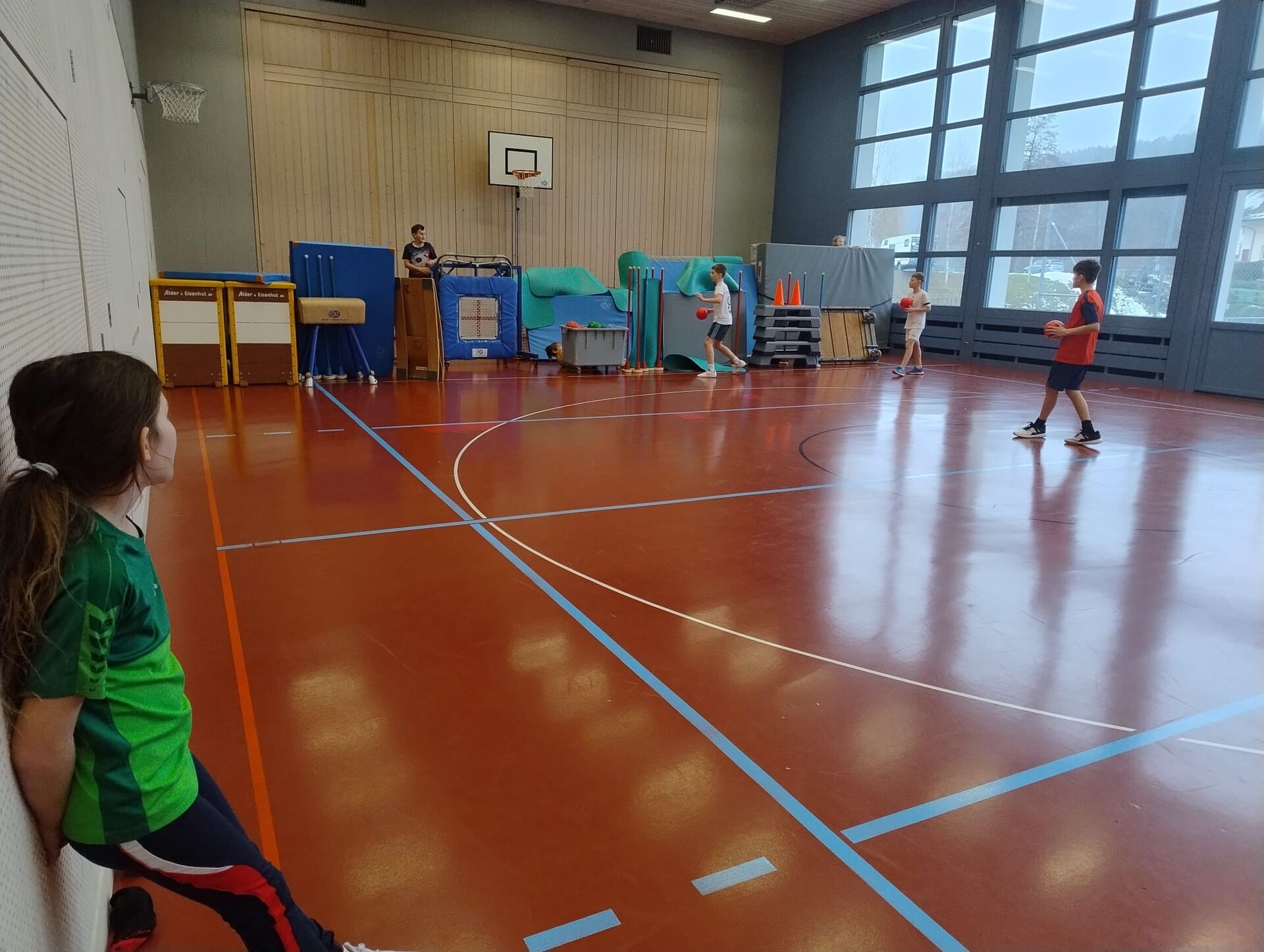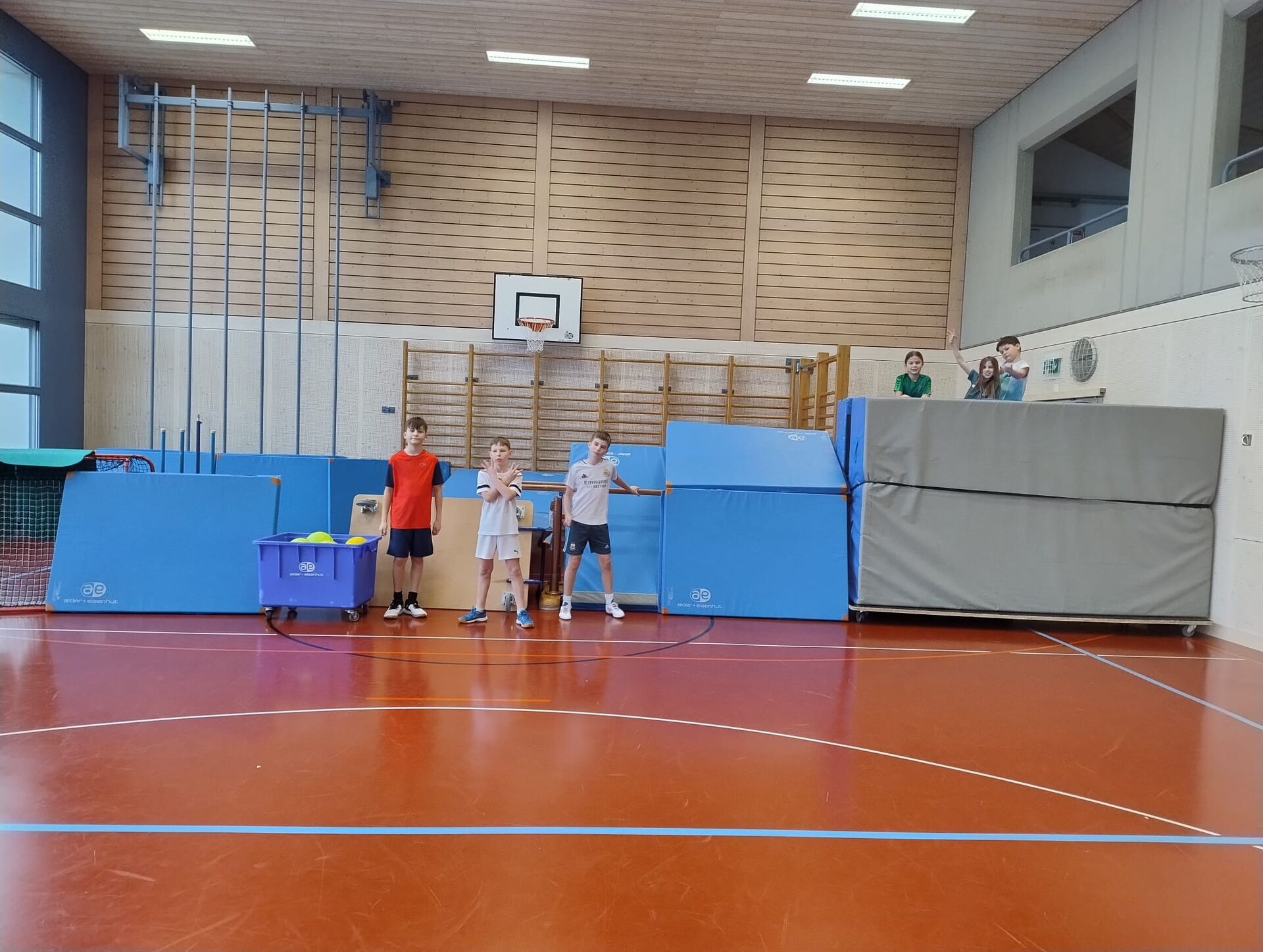 Der Wunsch nach einem Turnhallensonntag wurde ans ELFO herangetragen. Dieses Angebot für Schülerinnen und Schüler aus Hauptwil gab es vor Jahren schon einige Male, somit waren wir gespannt auf welches Interesse der Turnhallensonntag vom 18. Januar 2026 stösst. Am Vormittag waren alle Kindergartenkinder bis und mit zweiter Klasse eingeladen in die Turnhalle zu kommen, um zu spielen und zu turnen. Die Ringe wurden bereits vor dem Start hinuntergelassen und die dicken Matten unter der Sprossenwand deponiert, somit war das Programm nach dem Aufwärm-Fangis schon klar. Die 14 Kinder turnten, schaukelten und zeigten ihre Kunststücke an den Ringen, während einige lieber hoch hinauskletterten. Die Ring- Riesenschaukel war sehr beliebt und wurde von allen getestet. Als alle an der Reihe waren, wurde das Material wieder versorgt und die Kinder wählten Trampolinspringen und Fussball als nächstes aus. Der Fussball wich nach einer Weile den Unihockeyschlägern und auf dem Minitrampolin zeigten viele Kinder ihr Können. Dazwischen konnten sich die Kinder bei Äpfeln, Tessiner Brot und etwas Schokolade stärken, einige hatten kaum Zeit zum Essen und waren zack schon wieder in der Turnhalle. Beim abschliessenden «Omeletten- Fangis» bekamen alle nochmals so richtig warm und wir konnten nach kurzweiligen 2 Stunden bestgelaunte Kinder verabschieden.