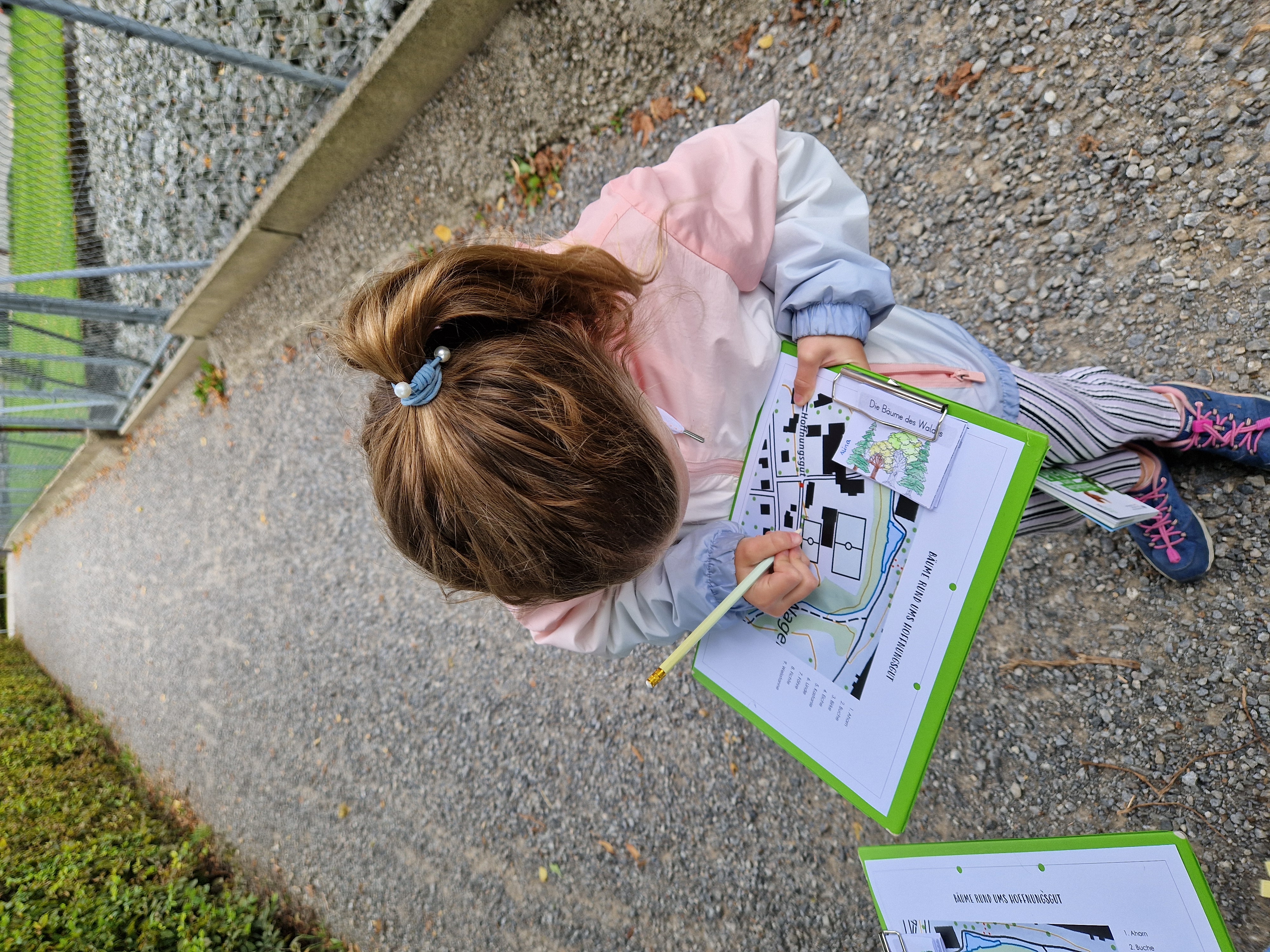 Ist es eine Buche? Oder doch eine Linde? Ausgerüstet mit dem selbstgebastelten Baumlexikon haben die Kinder erforscht, welche Baumarten auf dem Schulareal Hoffnungsgut zu finden sind. Dabei wurden Blattformen, Früchte oder auch die Rinde begutachtet und die Baumart anschliessend auf dem Ortsplan notiert. Die Auswertung der Feldforschung erfolgte dann im Klassenzimmer. Ganz klar in Überzahl sind mit über 20 Exemplaren die Ahornbäume gefolgt von den Buchen mit rund zehn Stück. Im Mittelfeld sind die Eichen, Linden und Kastanienbäume. Den Schlussrang belegen die zwei Apfelbäume.