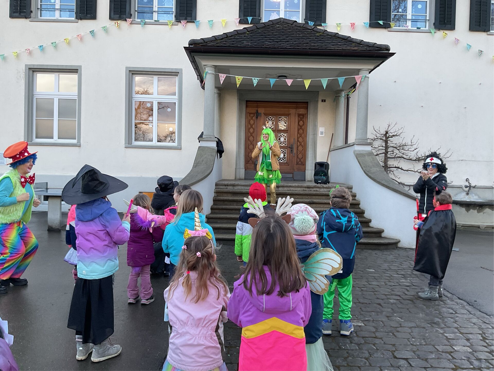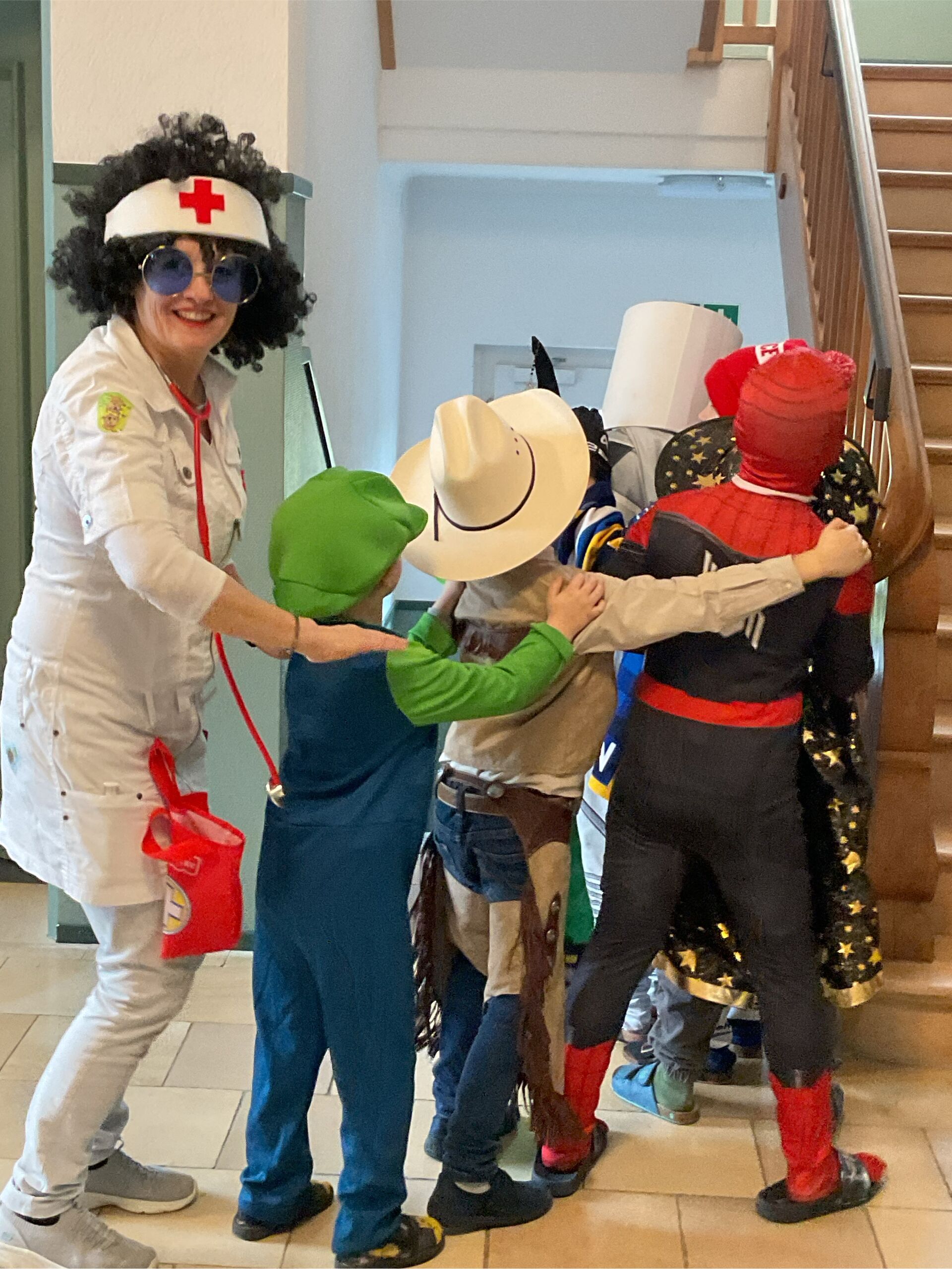 Es wurde getanzt, gelacht, gespielt und alle waren bunt verkleidet. Wir hatten Meerjungfrauen, Clowns, Cowboys, Prinzessinnen, Feen, Abteilungsleiter, ein Walkie Talkie, Schneemann, Ärztin, Froschkönig, Mario und Luigi, Geheimagenten und Polizisten, Einhörner, Ausserirdische und noch viele mehr.