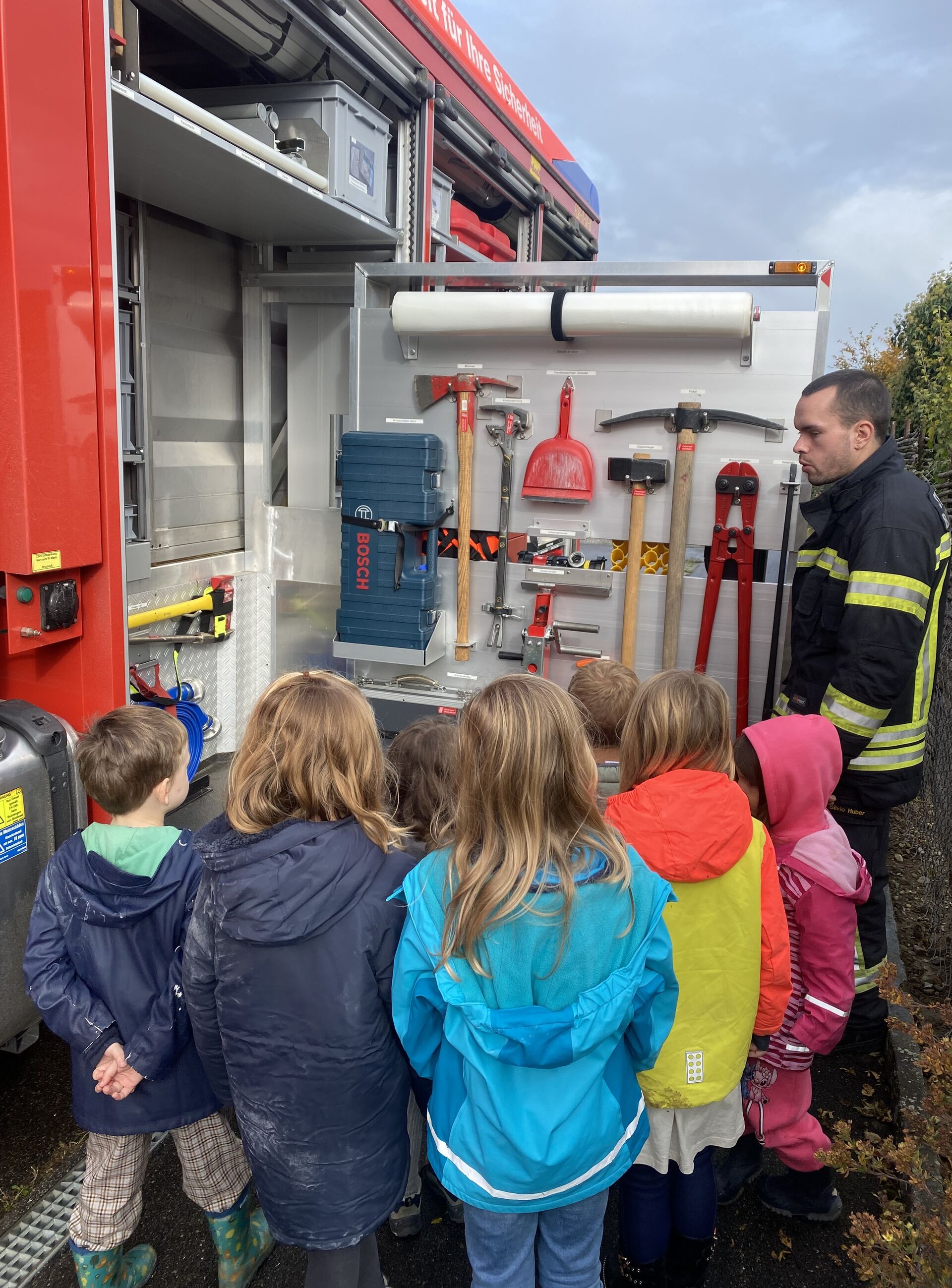 Am Dienstag, 21. Oktober durfte die GSA die Feuerwehr in Schweizersholz besuchen. Zwei nette Feuerwehrmänner erklärten uns die Aufgaben der Feuerwehr und zeigten uns die Feuerwehrautos. Sogar das grosse Löschfahrzeug aus Bischofszell hatten sie dabei. Wir konnten die schwere Kleidung anprobieren und sogar in das Fahrzeug einsteigen. Es war sehr eindrücklich!