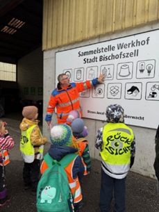Die Kinder der Grundstufe B besuchten am 10. November den Werkhof in Bischofszell, um mehr über das Thema Recycling zu erfahren. Herr Stierli erklärte uns die verschiedenen Sammelplätze und berichtete von seinem Arbeitstag. Hier die kleinen Berichte der Erstklässler: