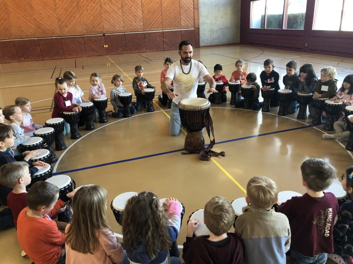 Vom 16. bis 20. März 2026 verwandelte sich die Schule Zihlschlacht in einen lebendigen, bunten Globus! Alle Kinder des Kindergartens bis zur 6. Klasse durften in verschiedenen Schulzimmern die Welt entdecken. Es wurde gebastelt, gekocht, gestaunt, gespielt und viel Neues gelernt – sei es beim Butter schütteln in der Schweiz, Elch basteln in Schweden, Dodgeball spielen in den USA, Regenrohre herstellen in Mexiko, Chinesisch sprechen in China, Vulkanausbrüche simuliert in Italien, Làngos gebacken in Ungarn, Dotpainting in Australien oder Haka - Tanz erlernen in Neuseeland. Am Donnerstagnachmittag strömten die Eltern begeistert durch die Länderzimmer und staunten über die kreativen Werke ihrer Kinder. Den krönenden Abschluss bildete der Afrika-Workshop am Freitagmorgen. Die ganze Schule vibrierte vor Energie – es wurde voller Freude getrommelt, getanzt und gesungen. Eine Woche, die Abenteuerlust weckte und allen ein Lächeln ins Gesicht zauberte!